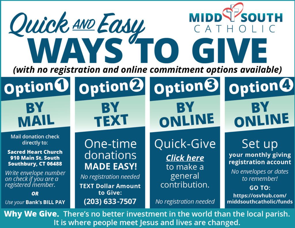 - Mail check or envelope to: Sacred Heart Church, 910 Main Street South, Southbury, CT 06488
